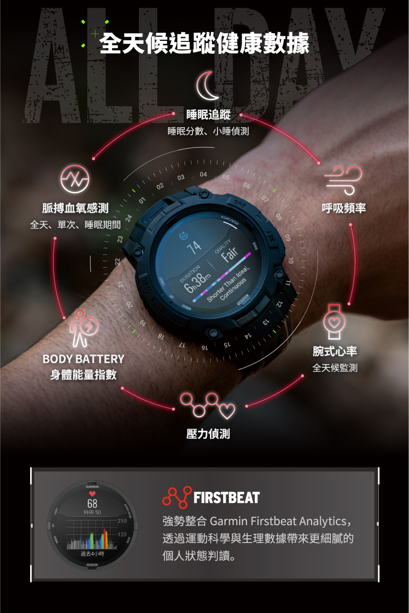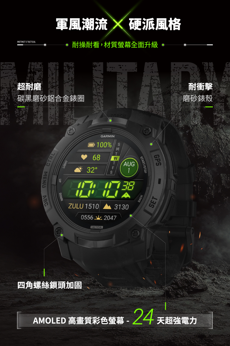 -碳黑磨砂金屬錶圈與耐衝擊錶殼,防水達10ATM