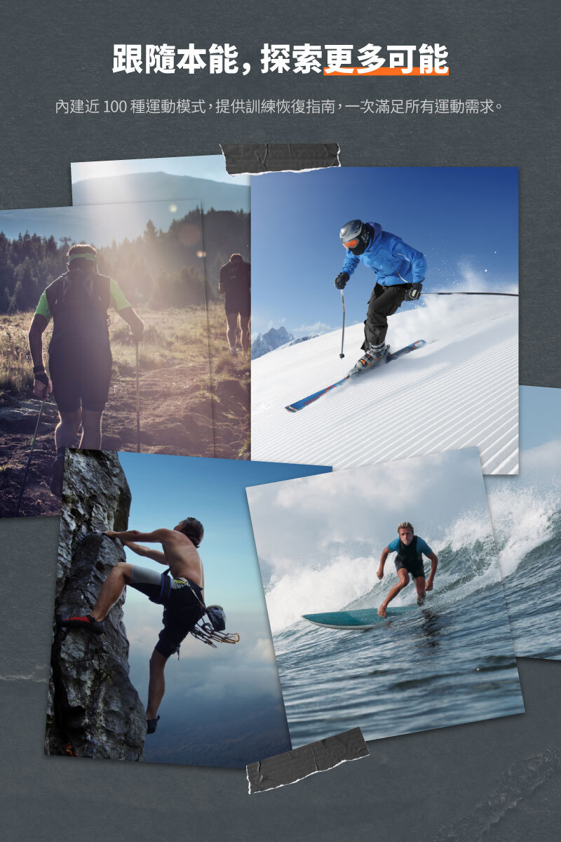 多衛星定位技術,多段亮度LED手電筒,各種健康監測功能,隨時掌握健康動態