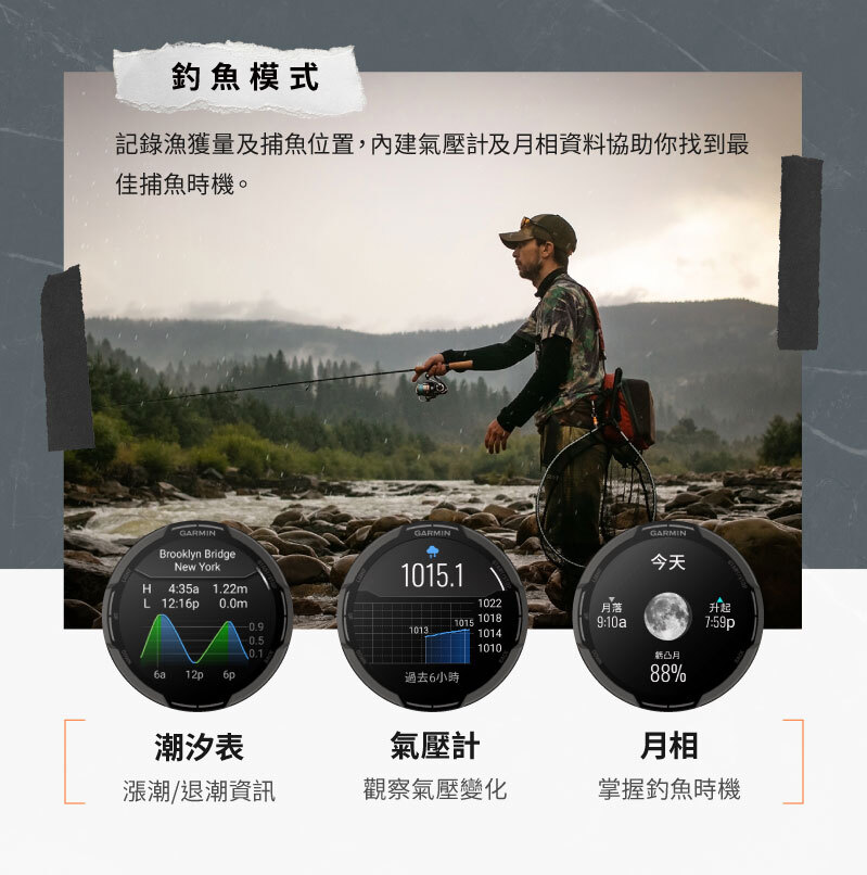 通過美國軍規測試,金屬強化錶圈,防水等級10ATM,支援 Garmin Pay感應支付