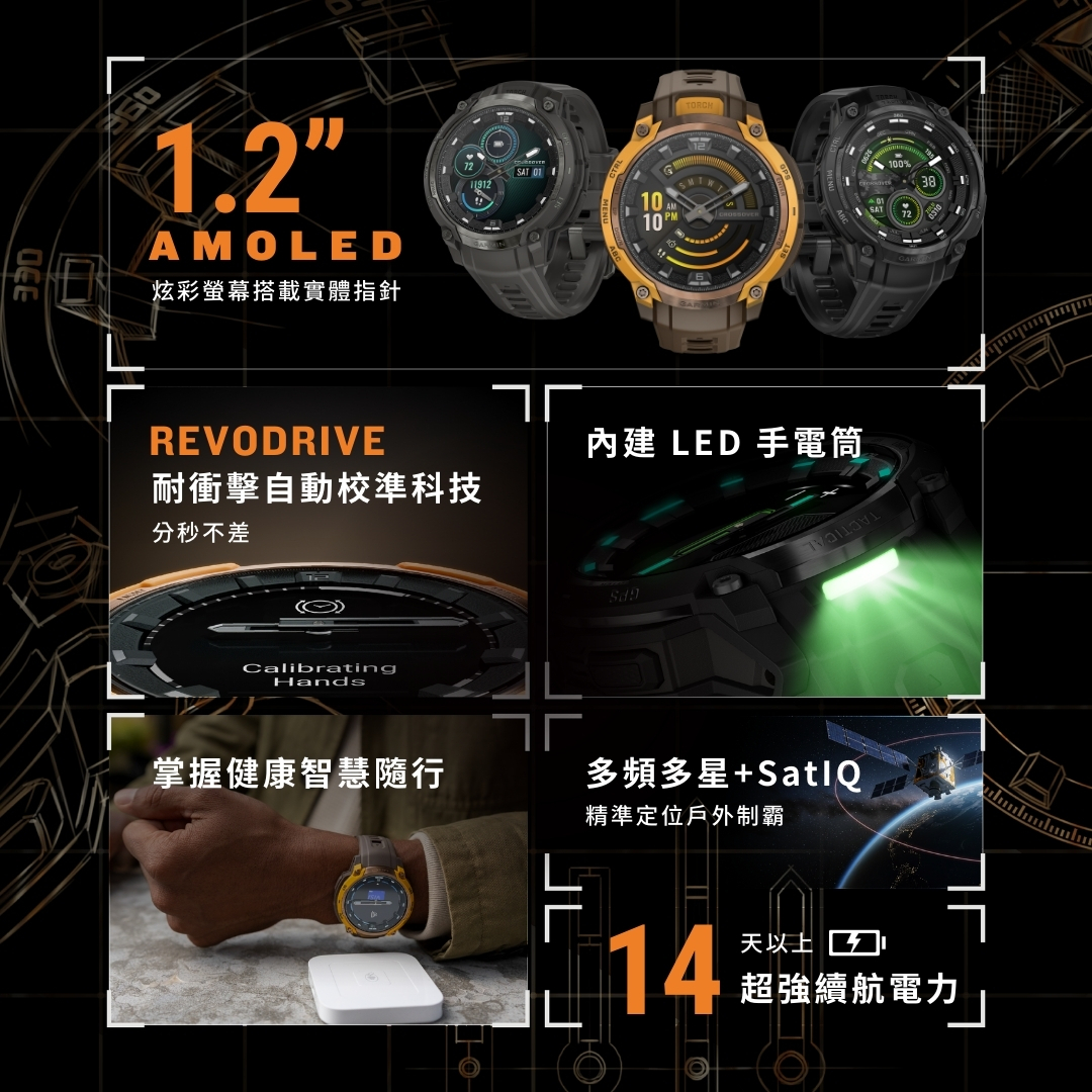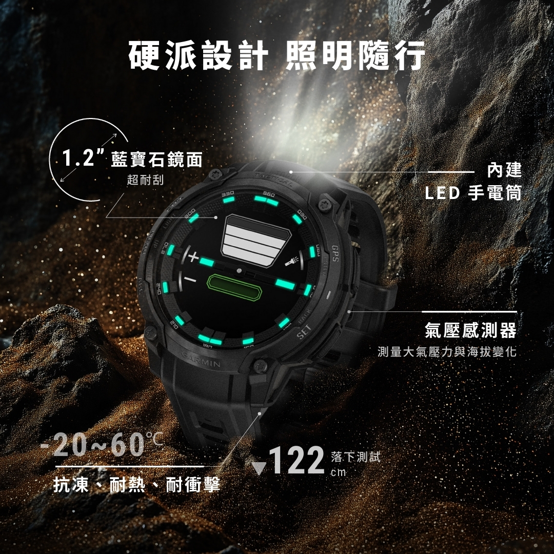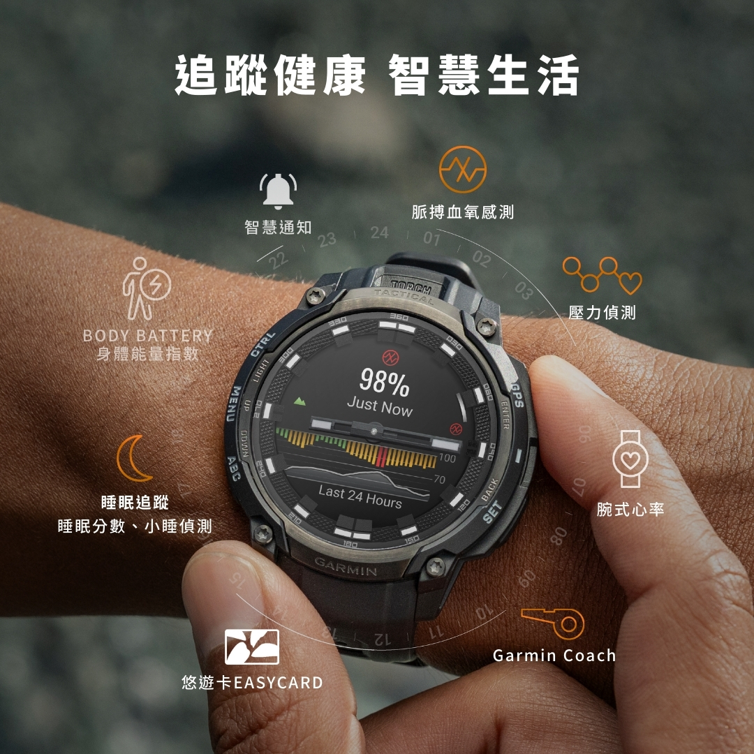 多頻多衛星定位技術,內建可調光LED手電筒,各種健康、運動監測功能,隨時掌握動態