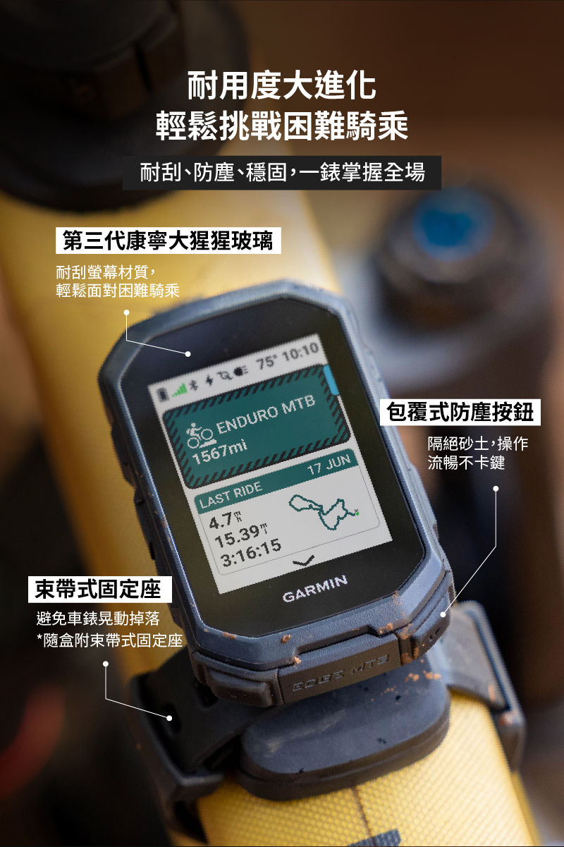 搭載康寧大猩猩抗刮玻璃,及全包覆式防塵按鈕,陪你越野嚴苛挑戰