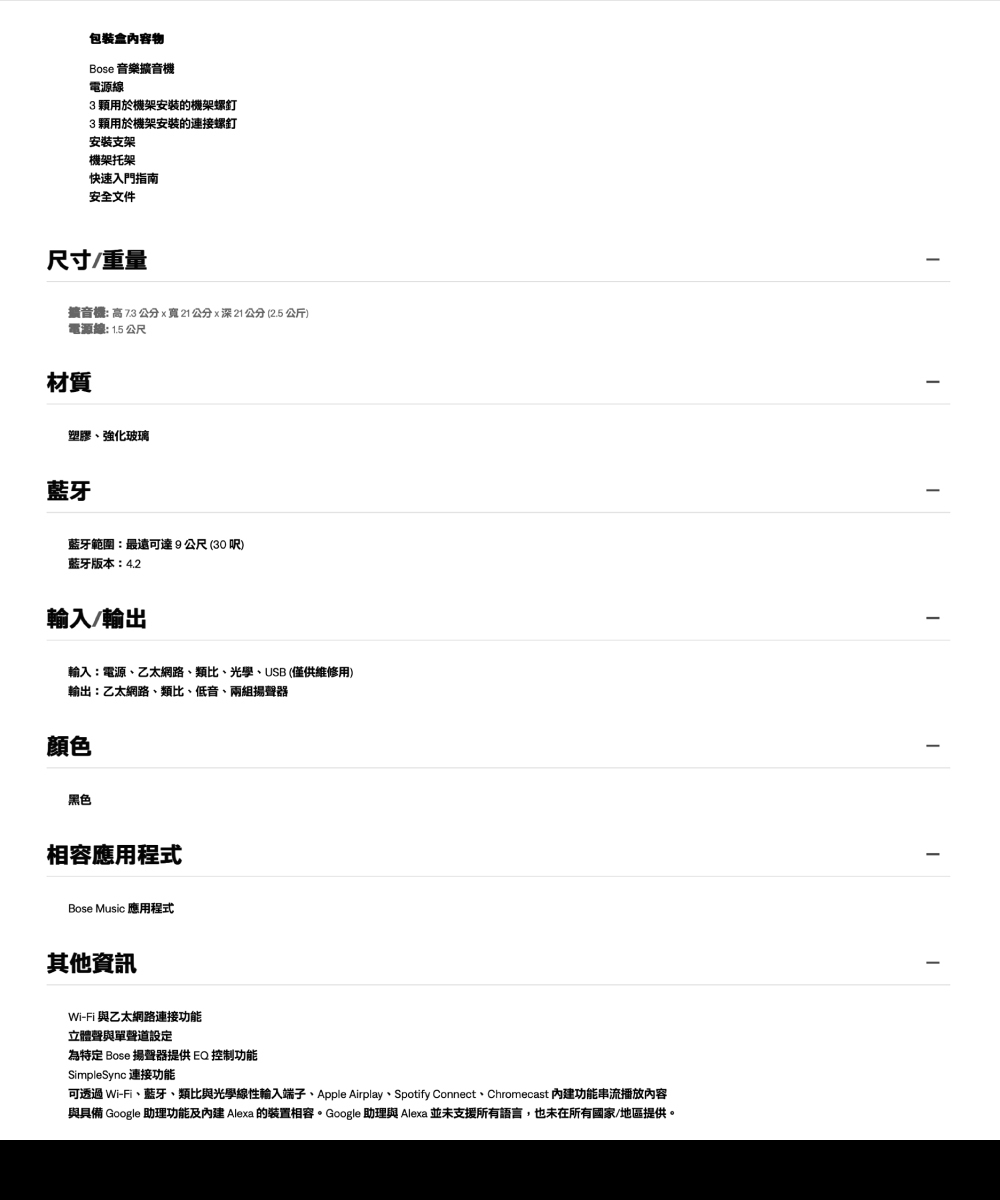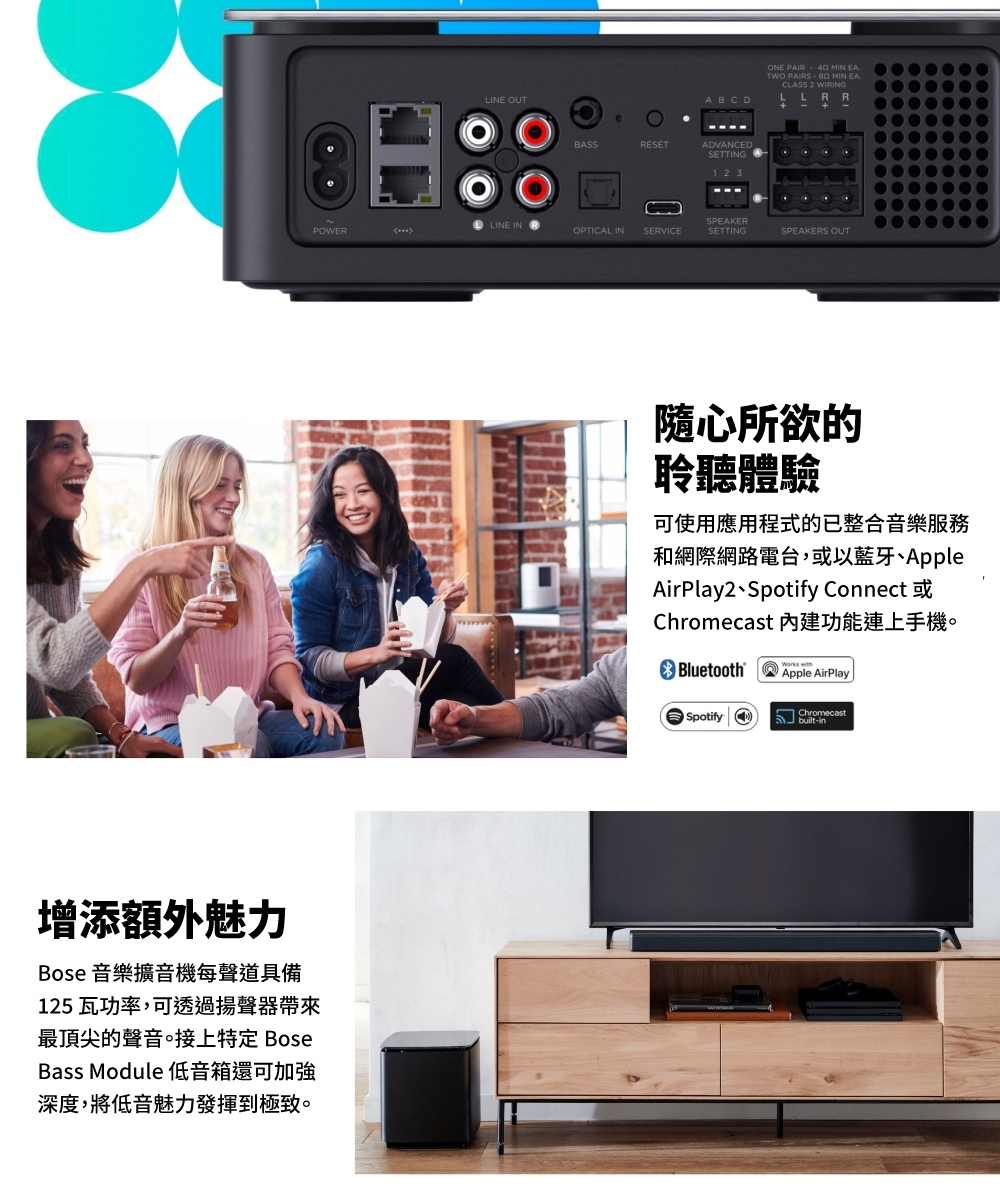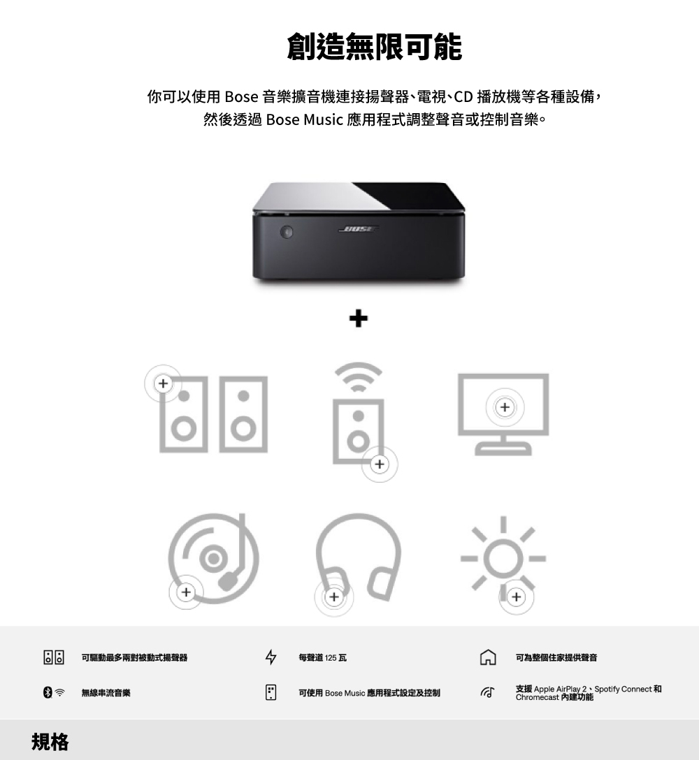 ●支援 Apple AirPlay 2、Spotify Connect 和 Chromecast 內建功能