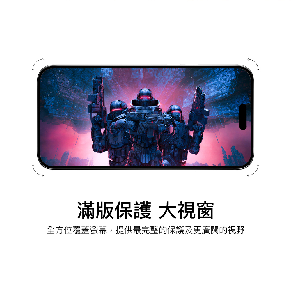 ◆9H 硬度鋼化玻璃材質提供滿版保護,兼容市面上幾乎所有的保護殼